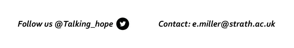 The Talking Hope project started in 2018, funded for six months by the EU Social Innovation Fund and the Scottish Government. The second six-month phase, in 2019, was funded by the Scottish Government and The Good Shepherd Centre. After a two year gap, phase 3 ran from October 2021 till July 2022, with additional partners and funded by the Scottish Government and includem. Talking Hope is guided by a multi-agency steering group with representatives from each partner agency. We are still meeting and working out next steps.