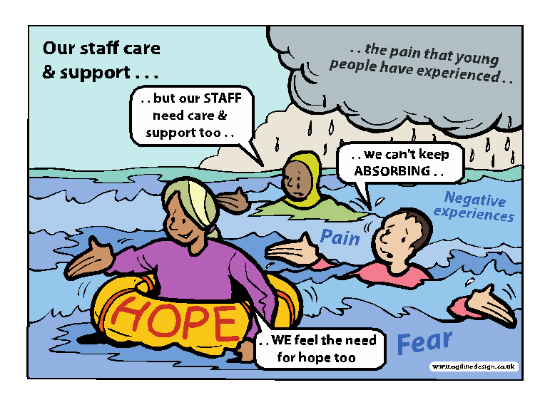 Thinking about grief and loss for staff, Norrie Clark, service manager for Stepdown (at St Mary’s secure care centre), wrote a blog about grief and loss for young people and staff. His Masters dissertation was on this topic and he quoted a member of staff who contributed to his research: